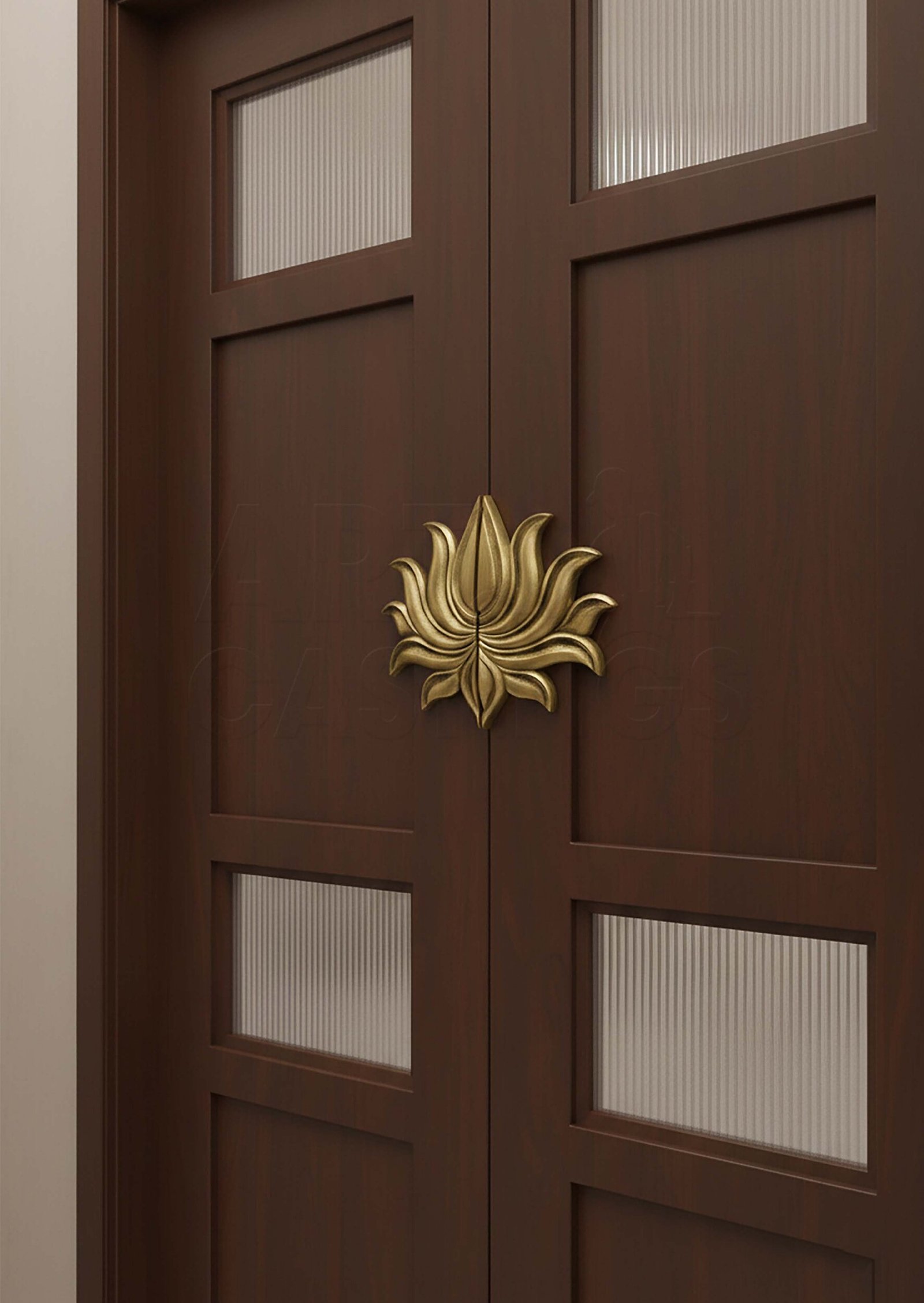 Lotus small brass handles are handcrafted with a brass metal antique finish and a thickness 8 mm. These lotus brass handles are ideal for Pooja doors. Lotus Handles are crafted with the following dimensions: W 152 mm x H 127 mm.
