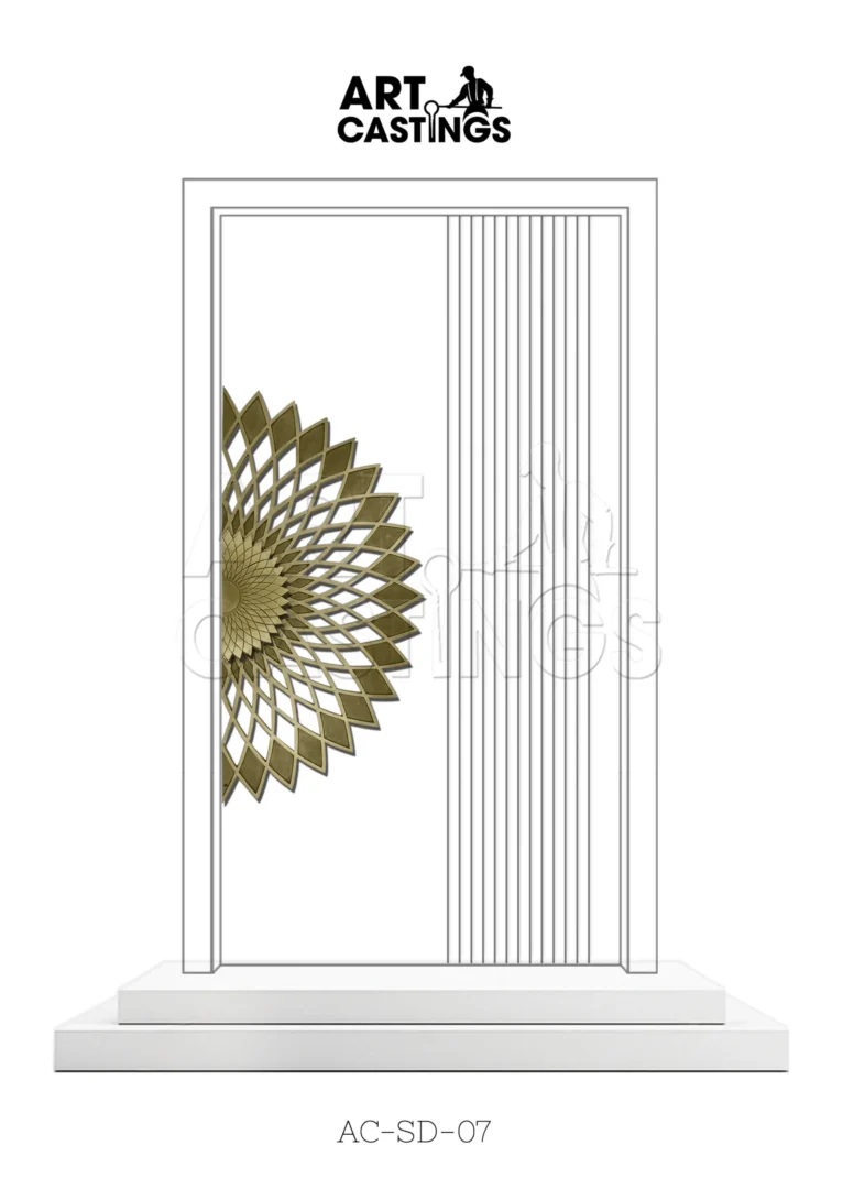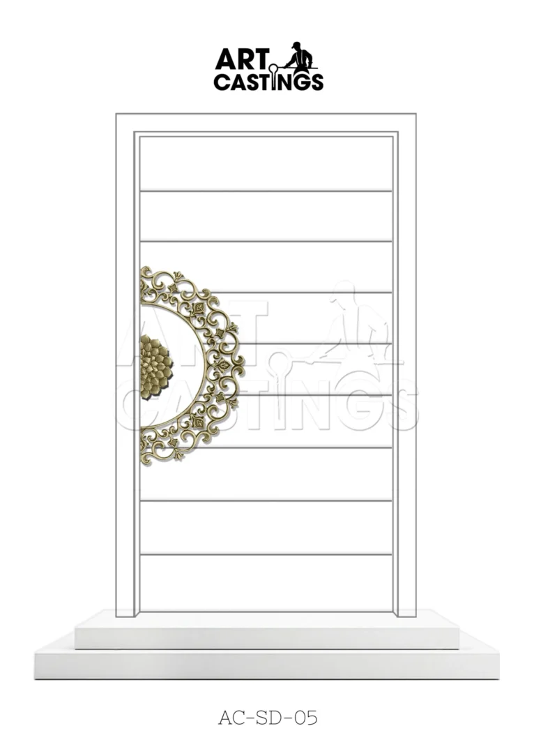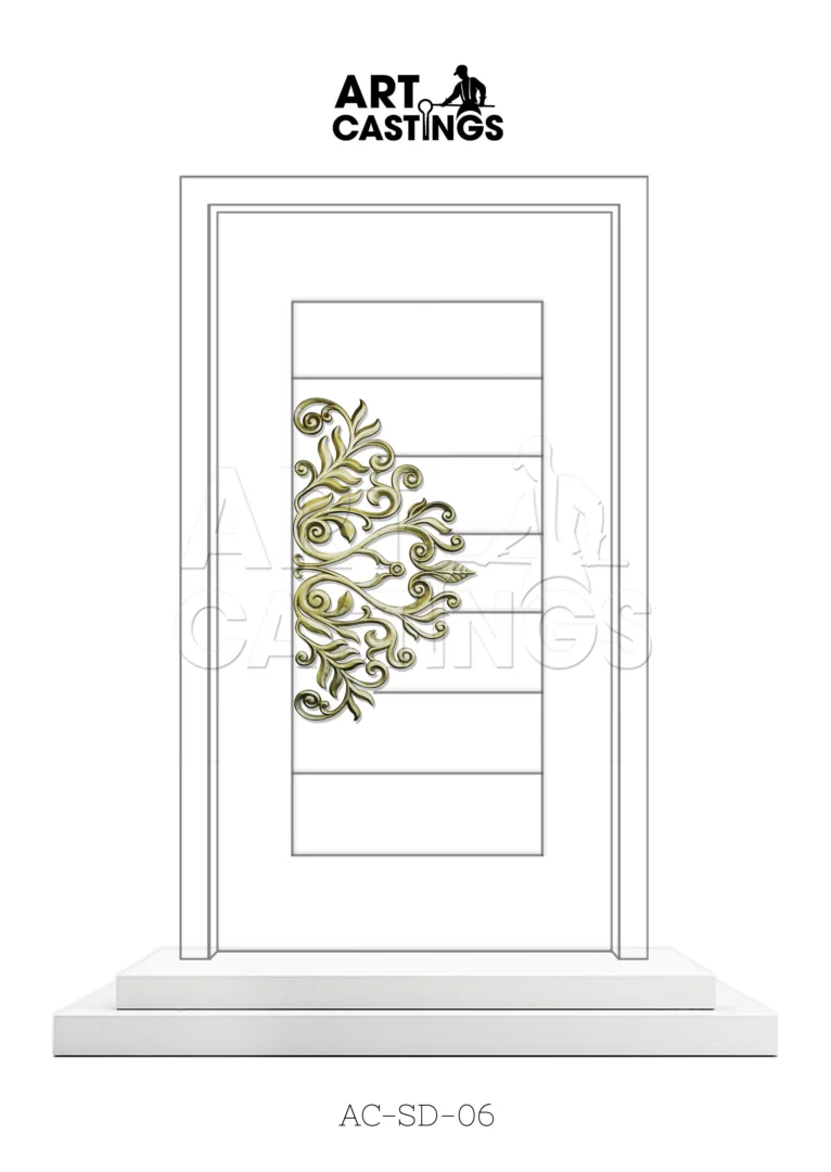 The contemporary hand-crafted single door design, adorned with the iconic Monstera leaf shape cast in brass metal, sounds both luxurious and stylish. The monstera leaf themed single door fusion of these elements creates a visually stunning entrance that undoubtedly leaves a lasting impression on guests. It’s the kind of monstera leaf themed single door detail that not only enhances the aesthetic appeal of the house but also elevates the overall ambiance to create a welcoming and elegant atmosphere.