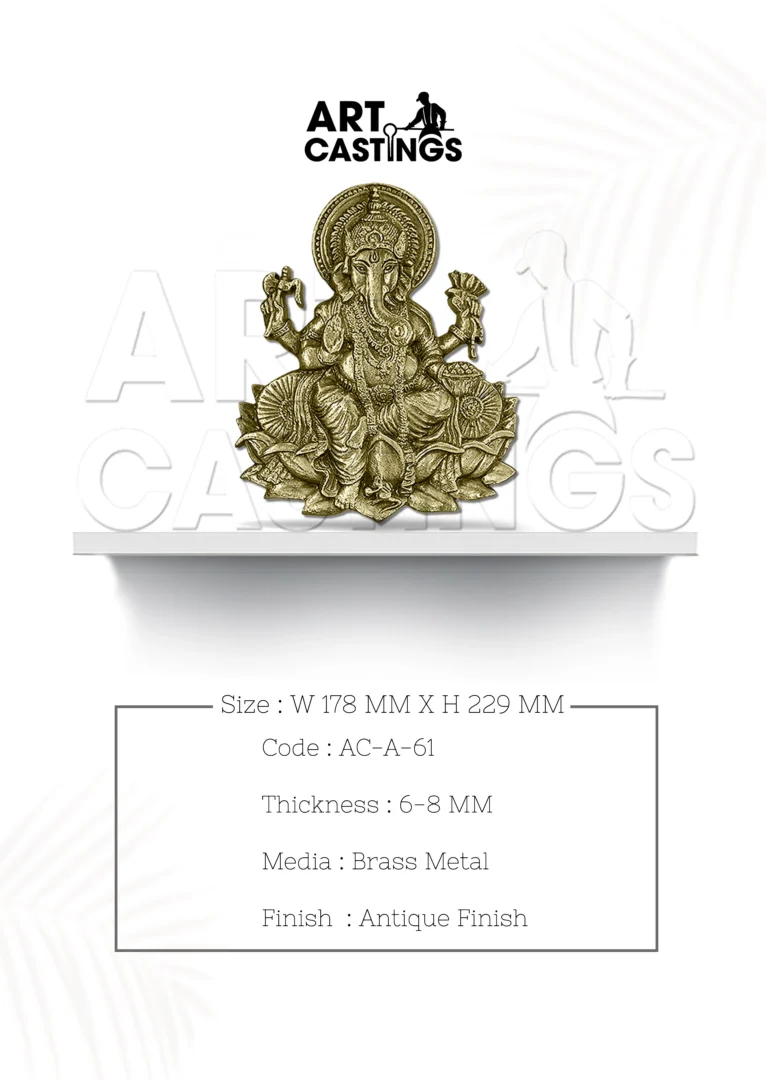 Enhance the sanctity of your pooja space with the Shanku Chakra Namas Brass Arch – Grill Type. Designed to adorn the top of pooja doors, this accessory is handcrafted with brass metal, featuring an antique finish that exudes timeless elegance. With a thickness ranging from 6 to 8 mm, it offers both durability and aesthetic appeal. The dimensions of this accessory measure 990 mm * 323 mm, making it an ideal addition to your sacred space, infusing it with divine charm and reverence.