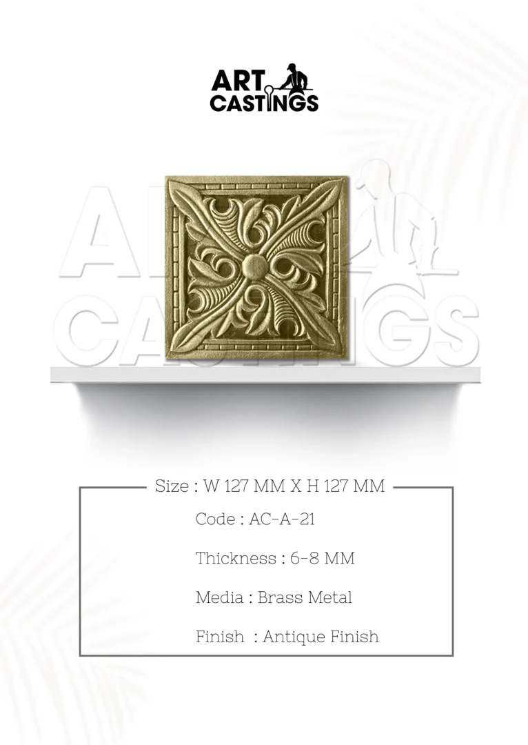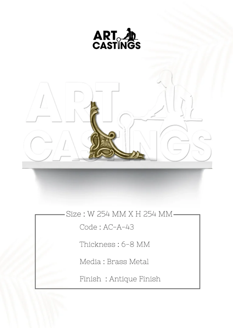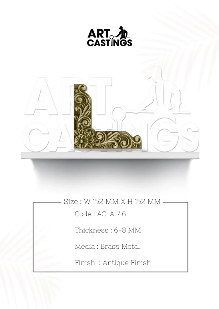 Enhance the grandeur of your pooja or main doors with the timeless elegance of a Traditional Brass Right Corner Accessory. Handcrafted with exquisite attention to detail, this accessory is fashioned from brass metal with an antique finish, adding a touch of traditional charm to your home decor. With a thickness ranging from 6 to 8 mm, it boasts durability and sophistication. The dimensions of the accessory measure 152 mm * 152 mm, making it the perfect addition to accentuate the beauty of your doors with its classic design and craftsmanship.