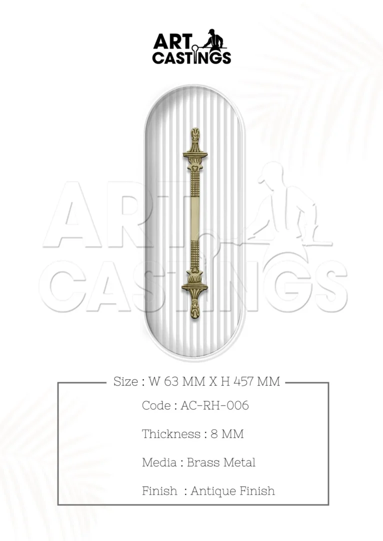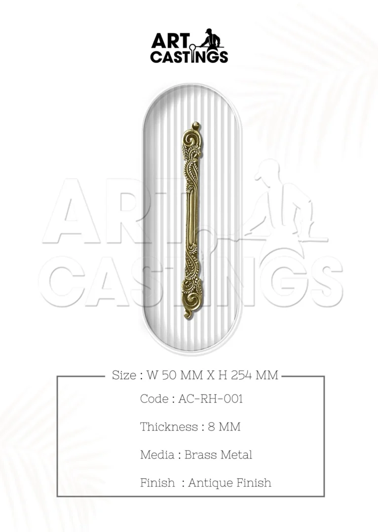 Meticulously handcrafted with an antique brass finish, this traditional large brass handle exudes timeless appeal. With an 8 mm thickness, it adds grandeur and a majestic touch to any entrance, whether it’s a main door or a pooja door. Measuring 79 mm in width and 914 mm in height, it is a striking addition to any space.